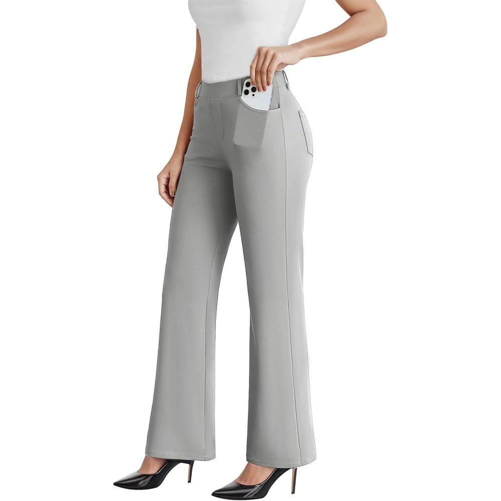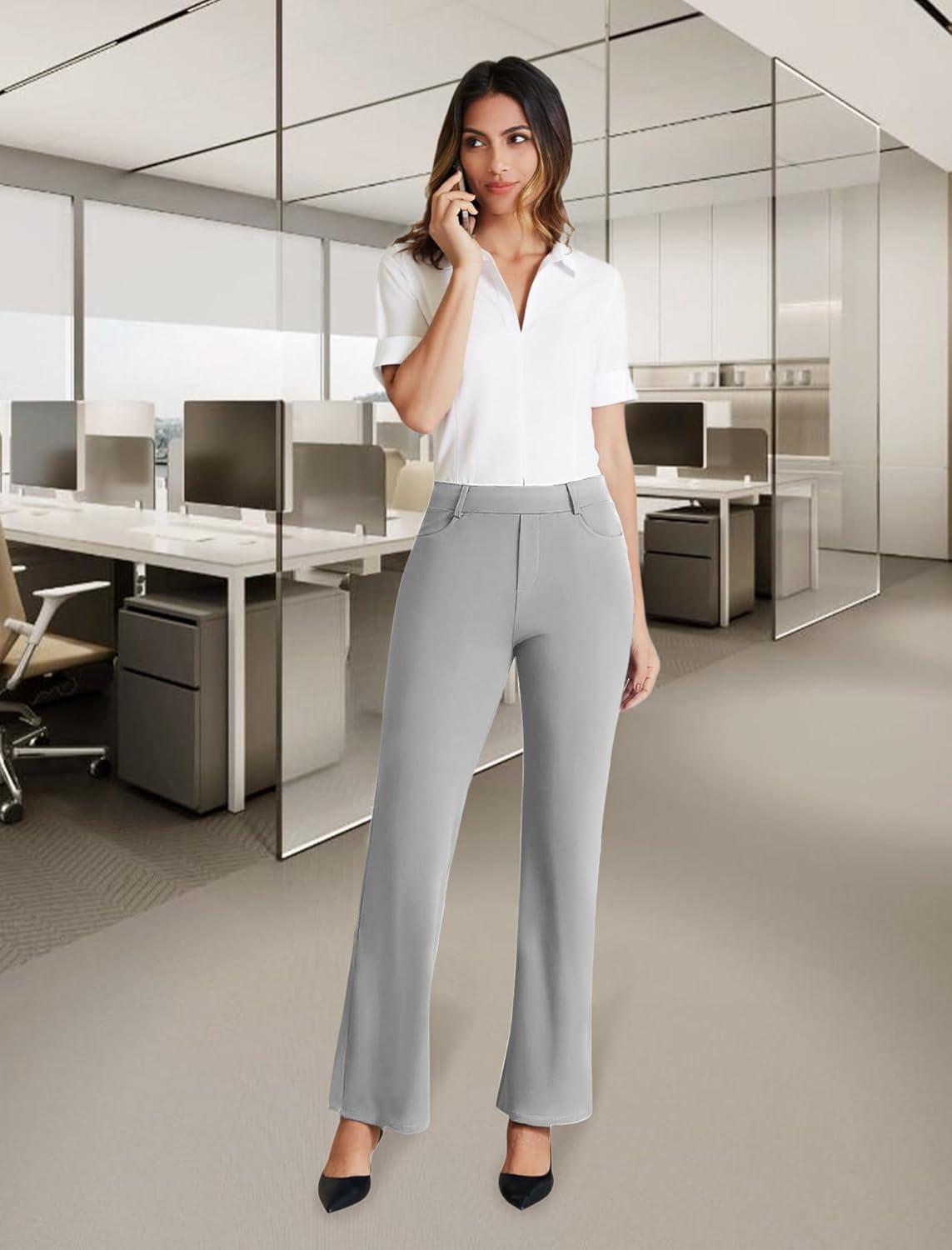 Dress Work Pants Women Business Casual Slack Trousers Stretchy Pull On Office Flare Pants with Pockets(Light Grey Sage)
