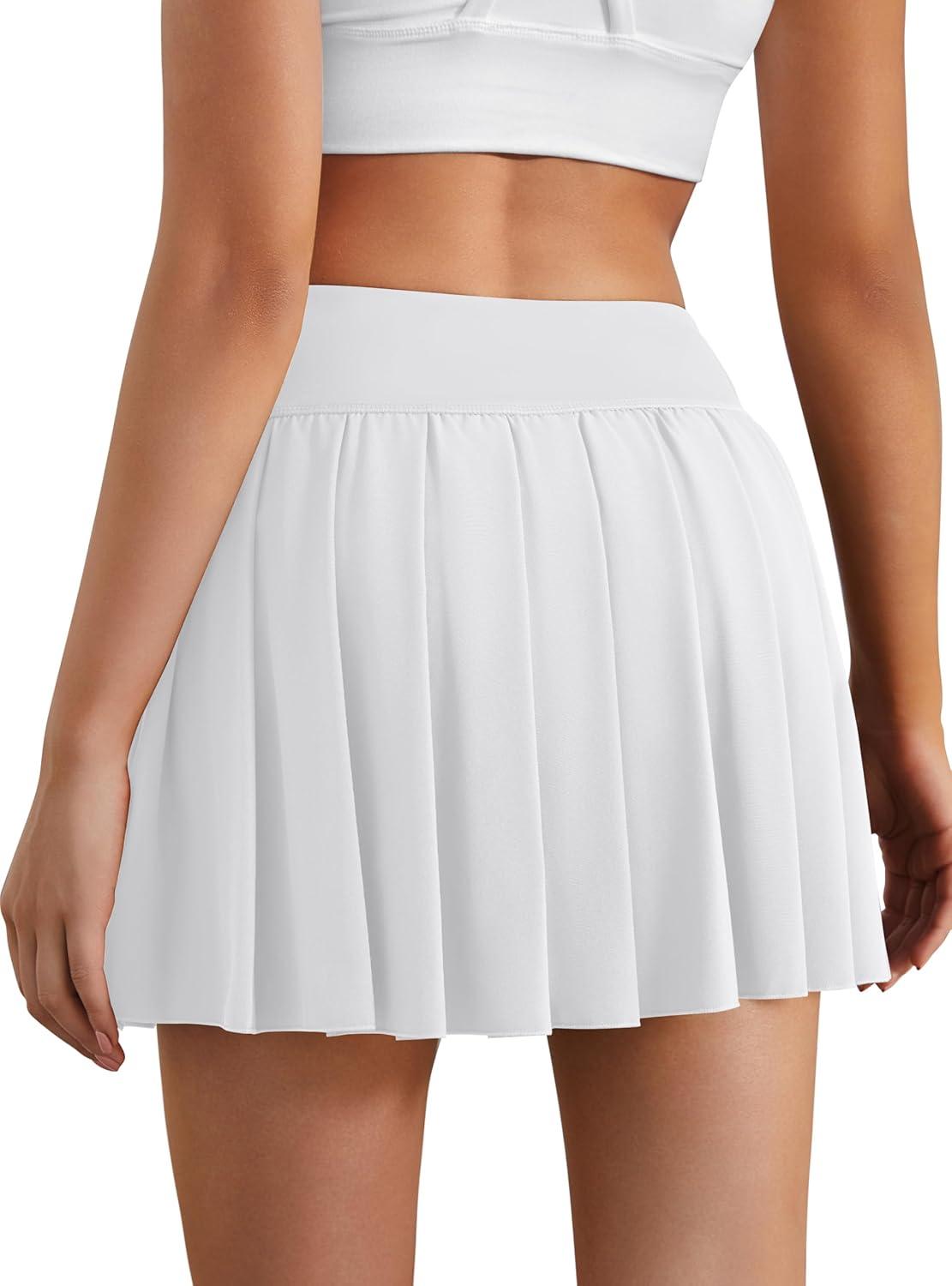 Pleated Skirts for Women High Waisted Tennis Skirt Athletic Skorts with Pockets Shorts Workout Golf Skort(White)