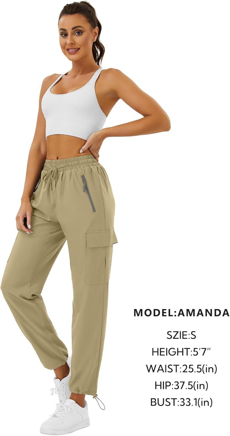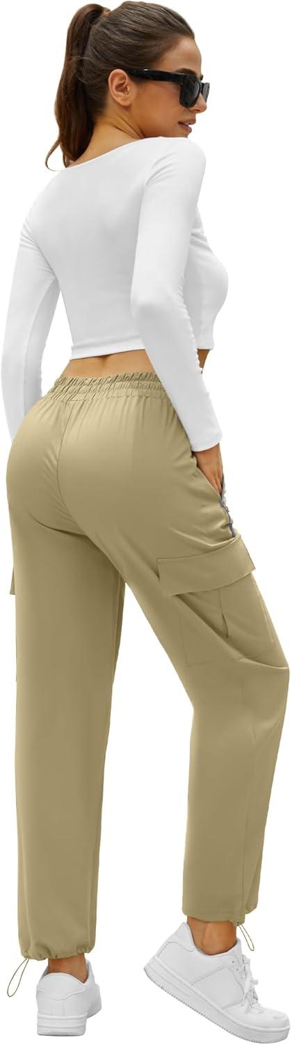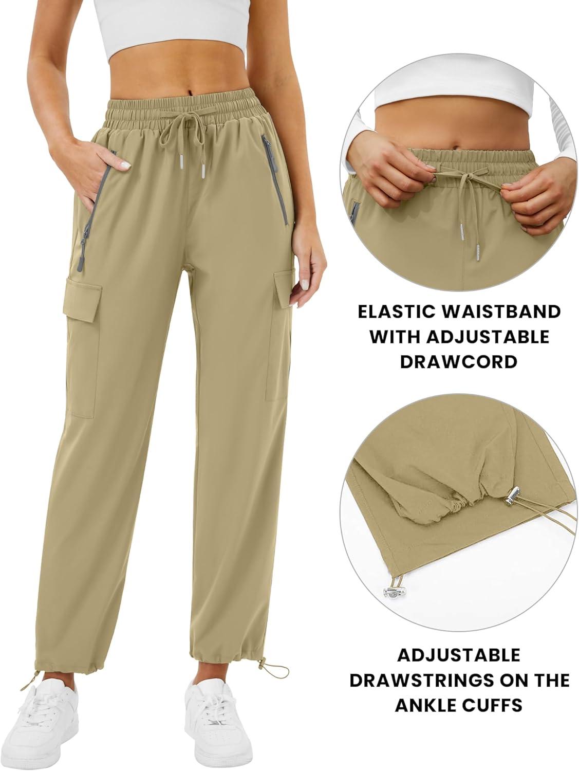 imageQuick Dry Cargo Pants Lightweight Tactical Hiking Pants with 6 Pockets for Women Elastic Waist and WaterResistantZipperkhaki