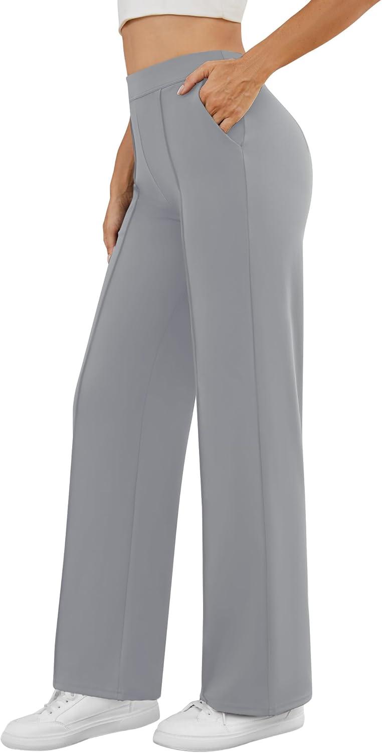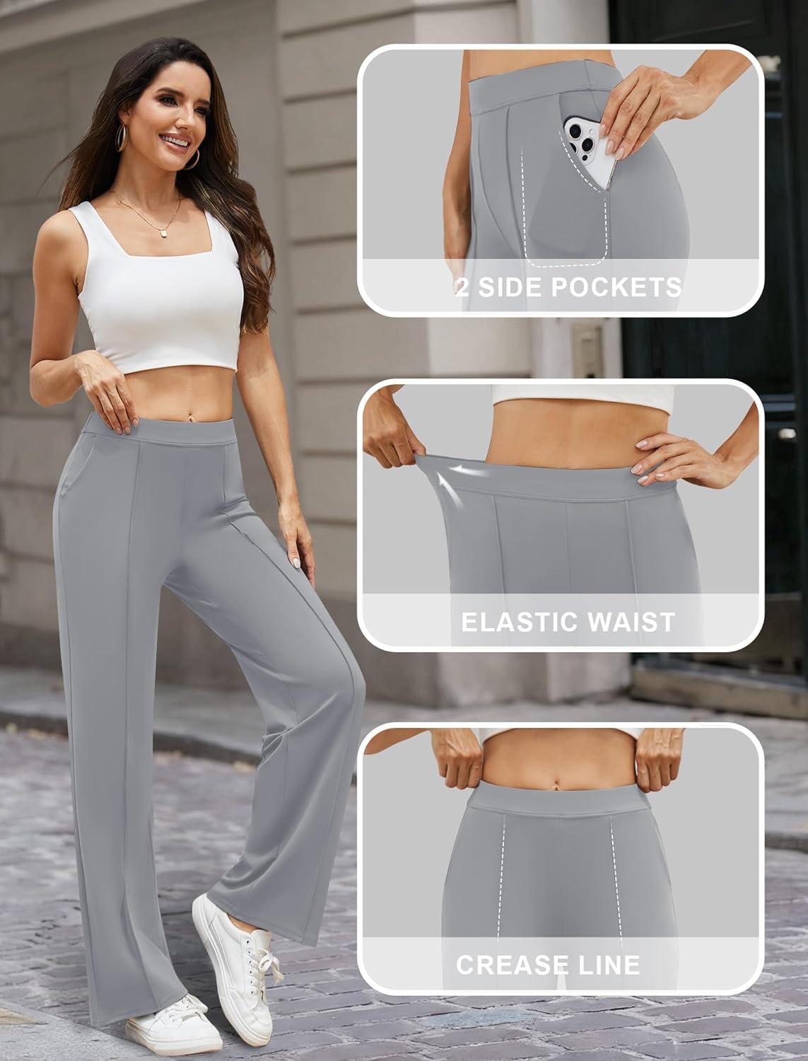 Womens Dress Work Pants Business Casual Slacks Stretchy Wide Leg Trousers with Pockets High Waist Pull On(Light Grey)