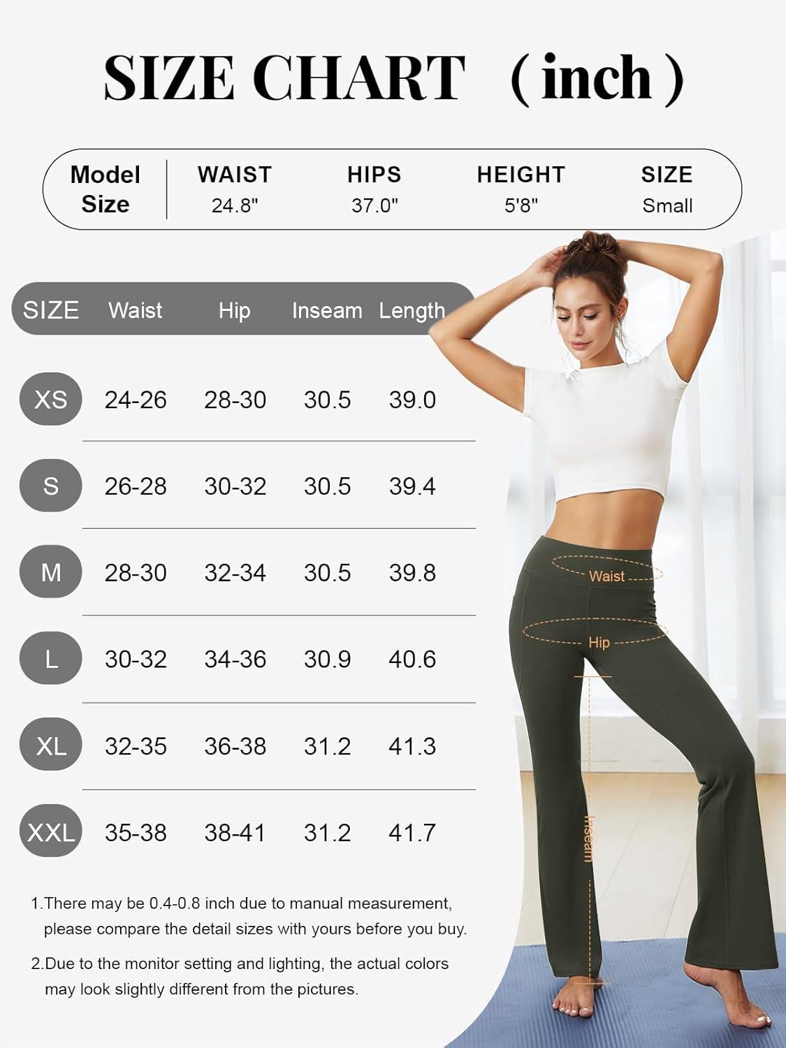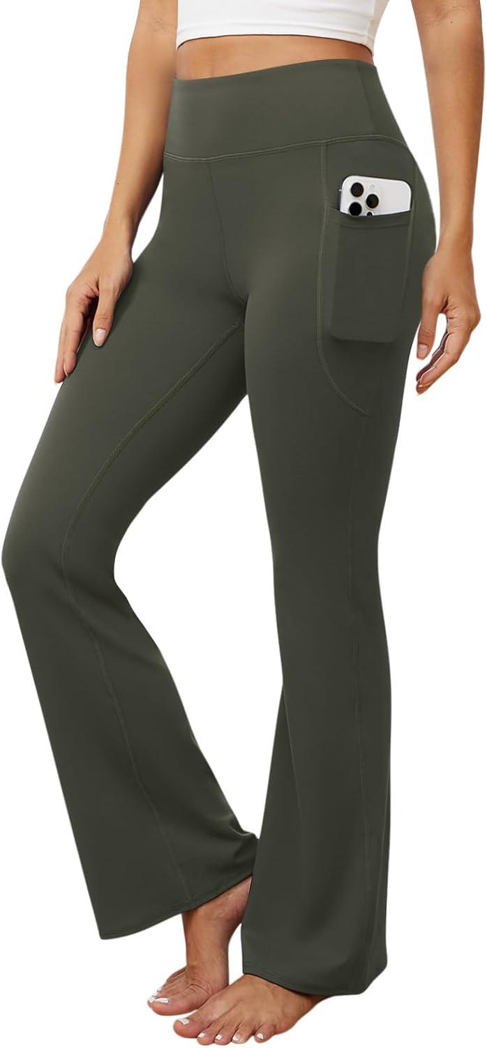 Womens Flare Yoga Pants with Pockets High Waist Tummy Control Flared Leggings Bell Bottom Gym Workout Leggings(Army Green)