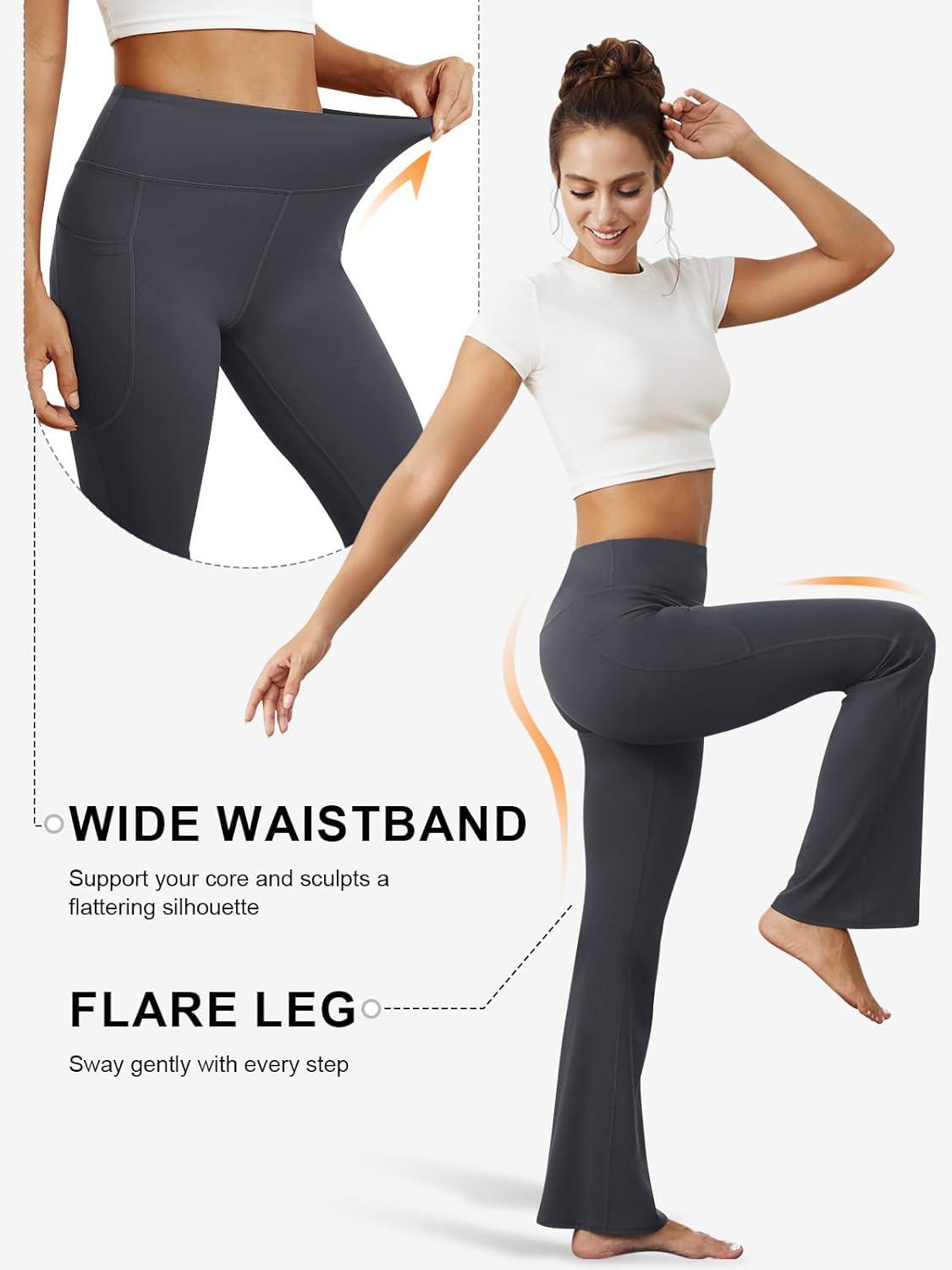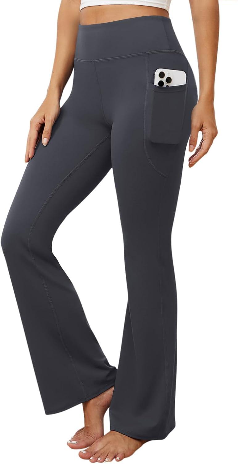 Womens Flare Yoga Pants with Pockets High Waist Tummy Control Flared Leggings Bell Bottom Gym Workout Leggings(Deep Grey)