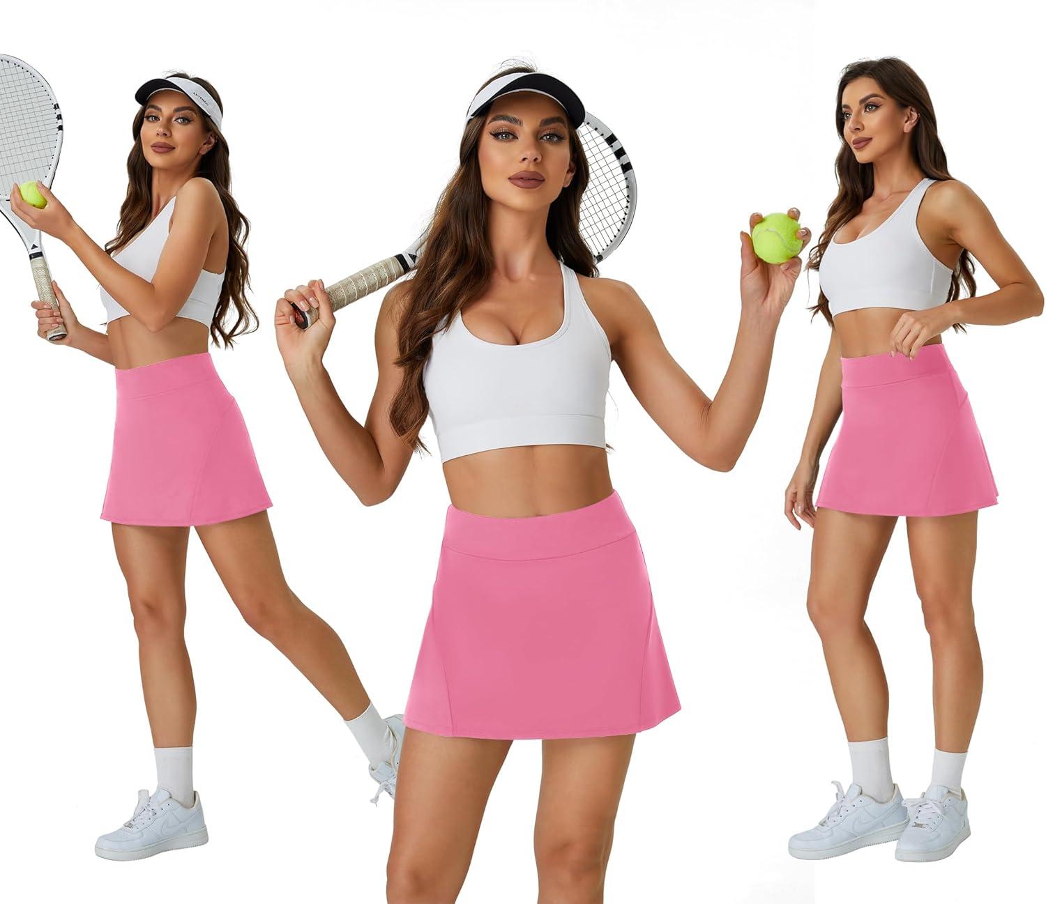 Women’s Tennis Skirt Golf Athletic Skorts with Shorts Pocket Workout Running Sports Dressy Casual Summer Mini Skirts(Hot Pink)