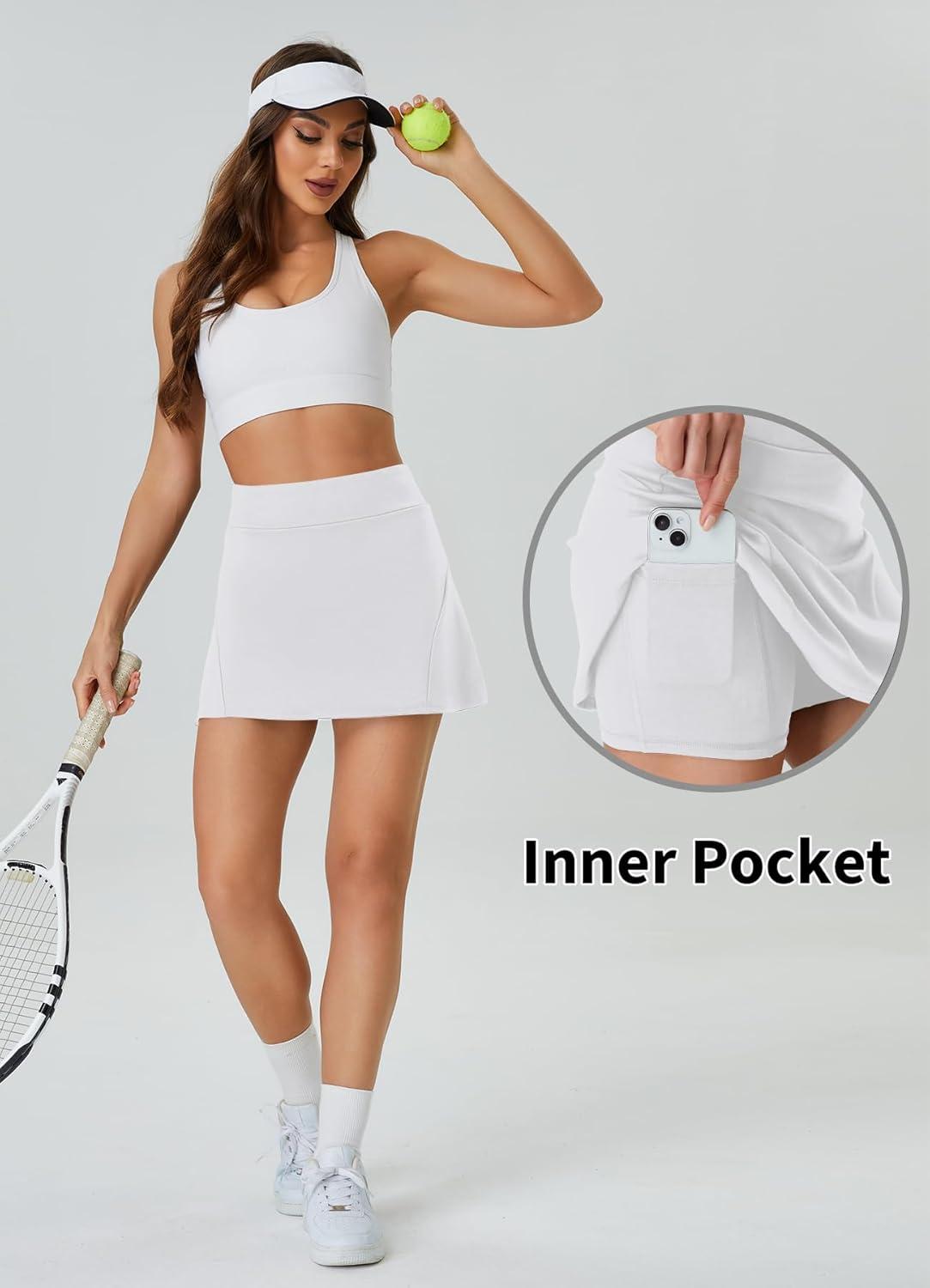 Women’s Tennis Skirt Golf Athletic Skorts with Shorts Pocket Workout Running Sports Dressy Casual Summer Mini Skirts(White)