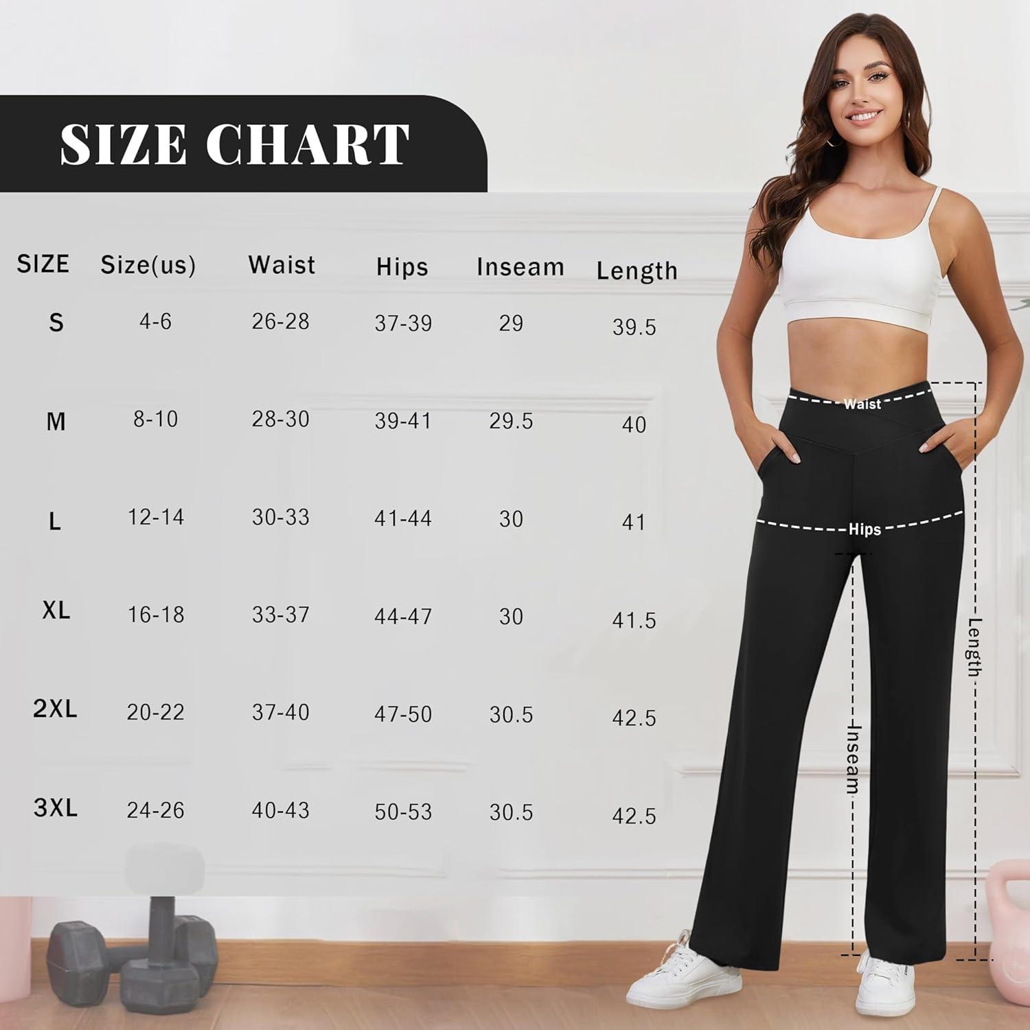 Womens Wide Leg Yoga Pants Crossover Work Dress Pants Lounge Sweatpants Casual Trousers with Pockets(Black)