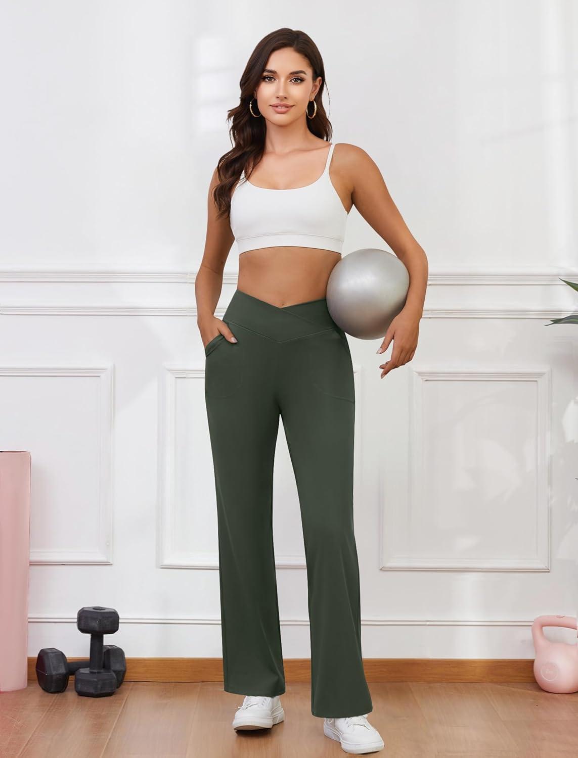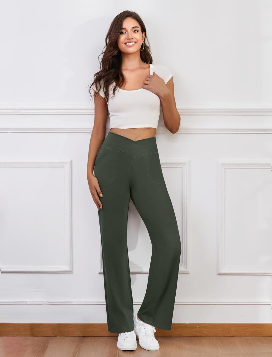 Don’t wait, get up to 50% off on Womens Wide Leg Yoga Pants Crossover Work Dress Pants Lounge Sweatpants Casual Trousers with Pockets(Olive Green) during our end-of-season sale event.